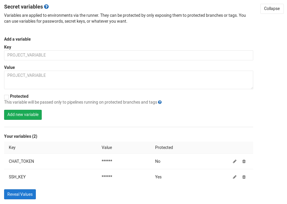 | CI_SERVER | all | all | Mark that job is executed in CI environment |