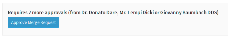 - If the approvers are equal to the amount of required approvals, all the approvers are required to approve the merge request.